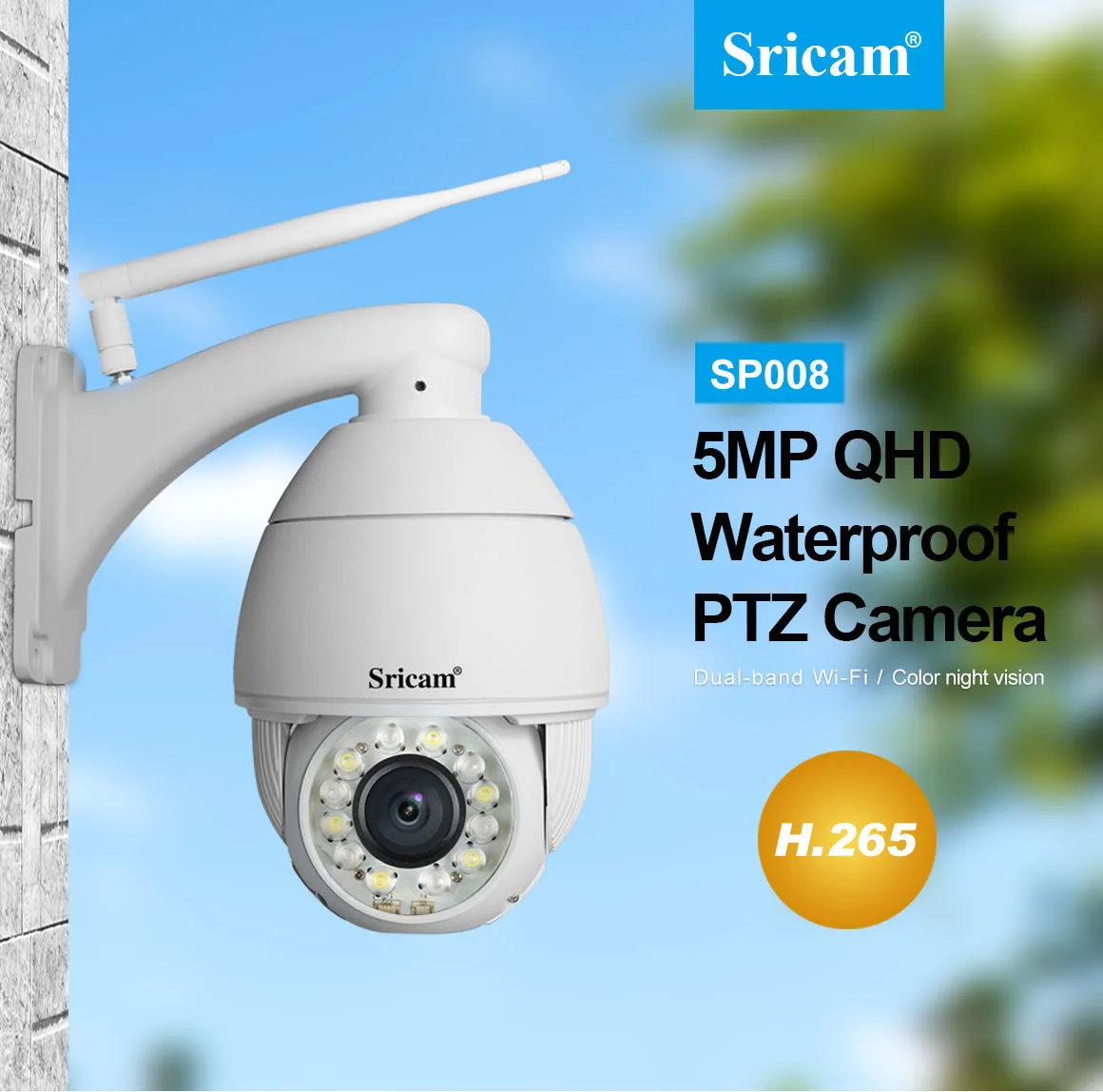 Product Name: Sricam SP008 5 Мп 5G Wifi IP смарт-камера наружная Водонепроницаемая беспроводная система видеонаблюдения 4 “PTZ Starlight полноцветная система видеонаблюд…